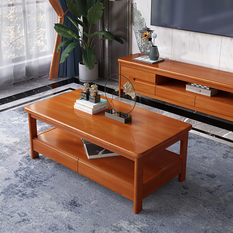Solid wood TV cabinet Tea Table Combo Modern Minima Small Household Type Rubber Wood American Living Room Home TV Cabinet