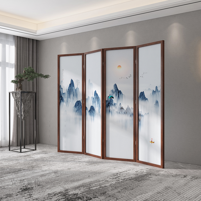 New Chinese-style Screen Partition Living Room Modern Simple Xuanguan Bedroom Shelter Home Office Solid Wood Folding Movement