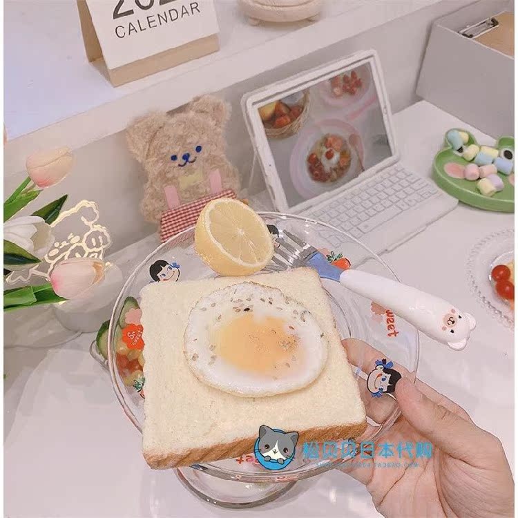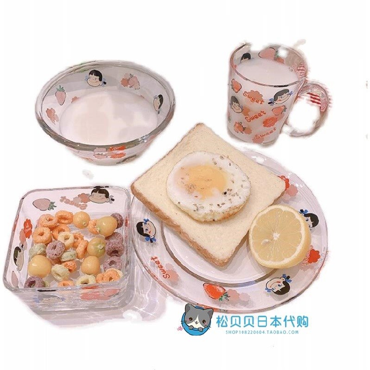 Japan imported hapins fruit salad bowl milk cup transparent glass bowl glass plate girl heart tableware