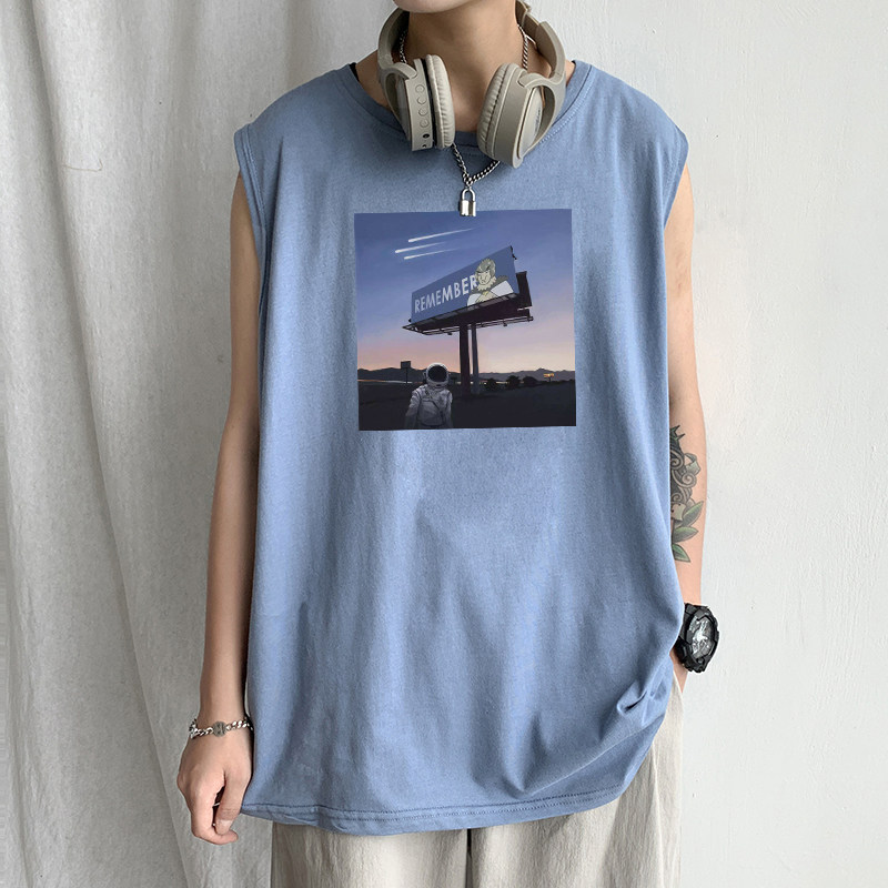 nasa astronaut vest men's summer pure cotton thin section tide card trendy waistcoat waistcoat wave sleeveless T-shirt man