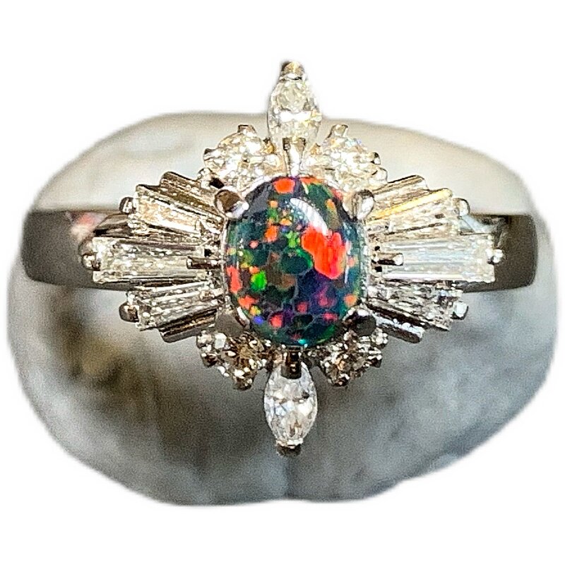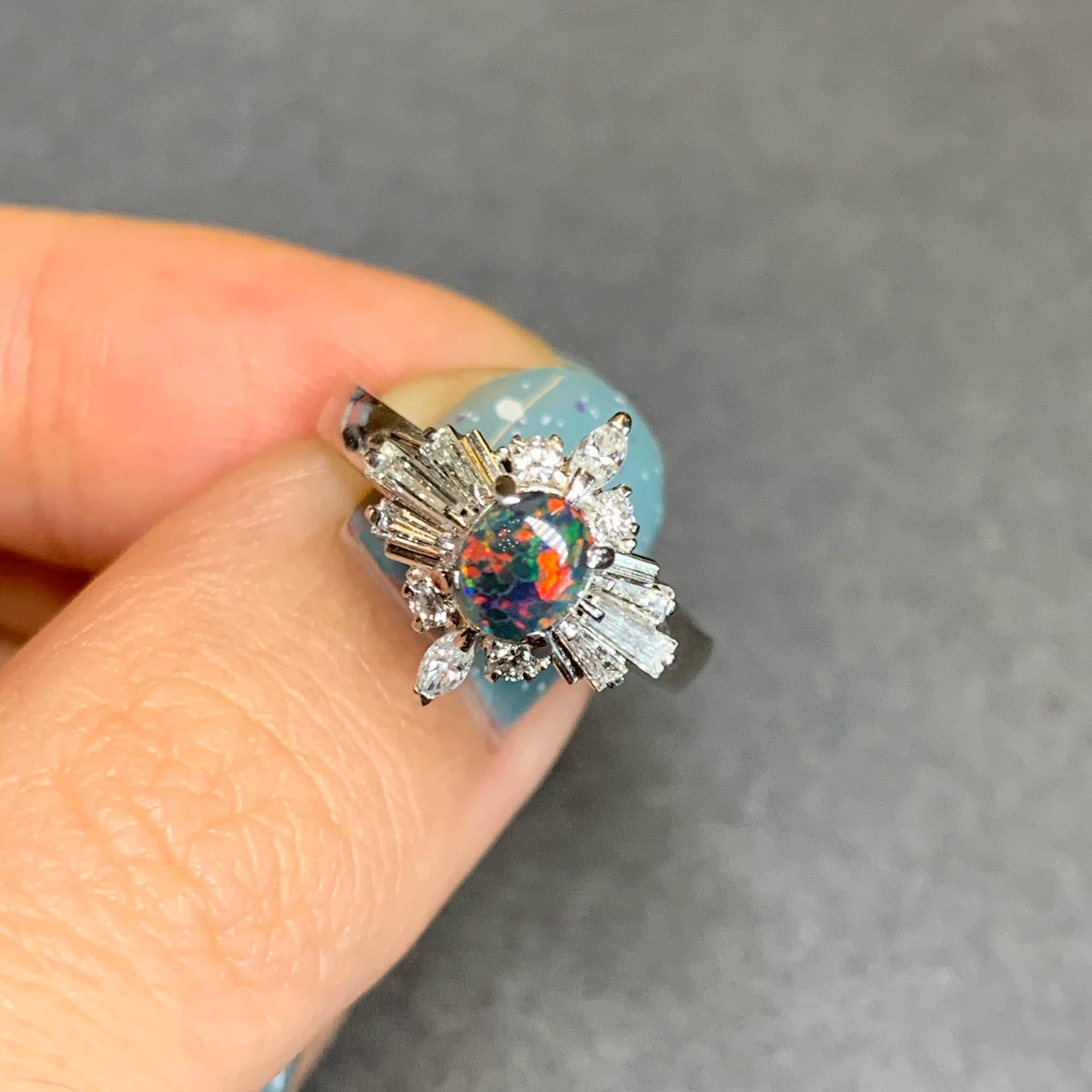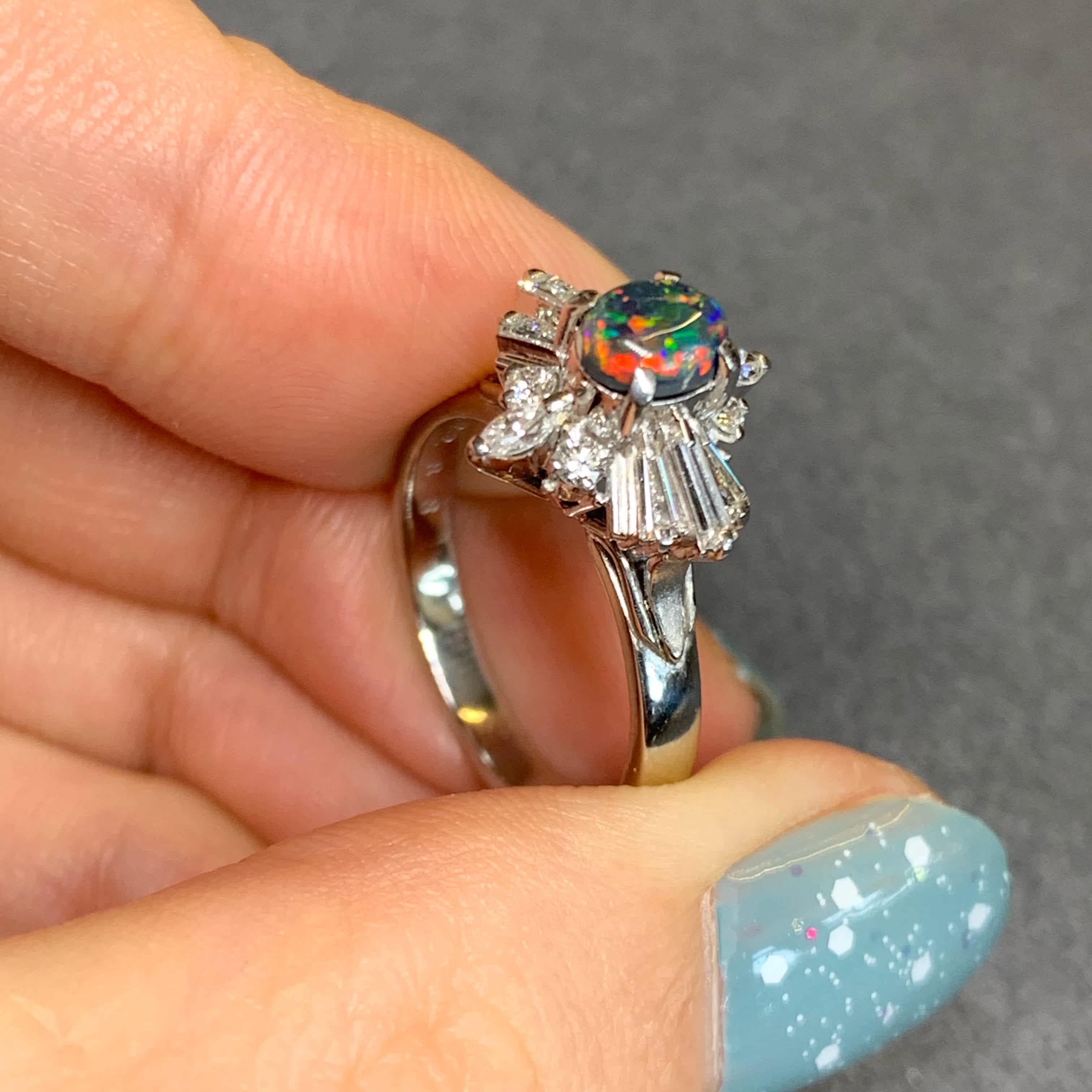 Sold Opal Island Rare Lightning Ridge Black Opal Pave Stone Color Ring