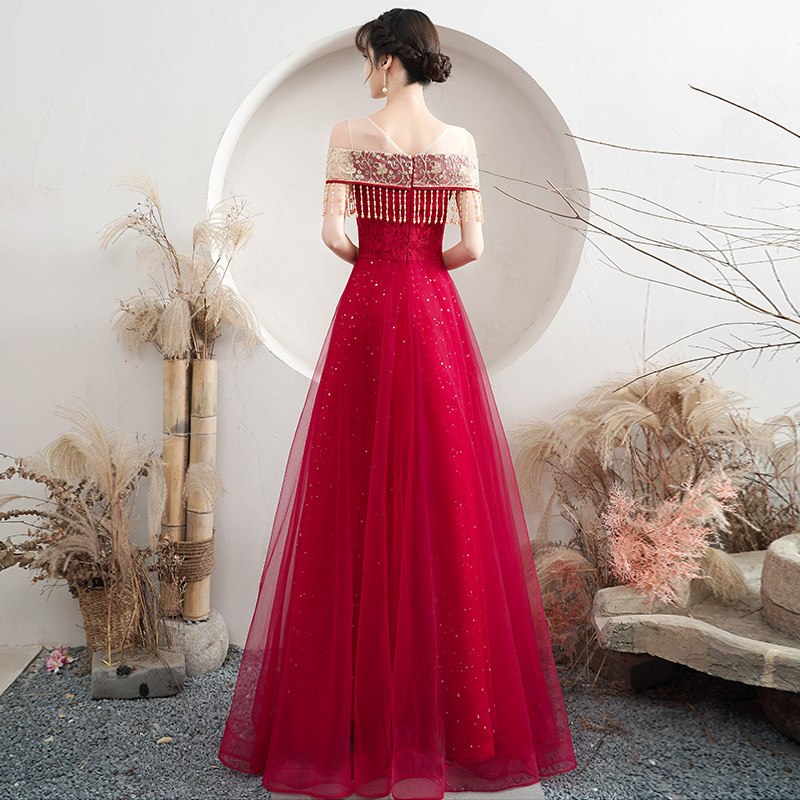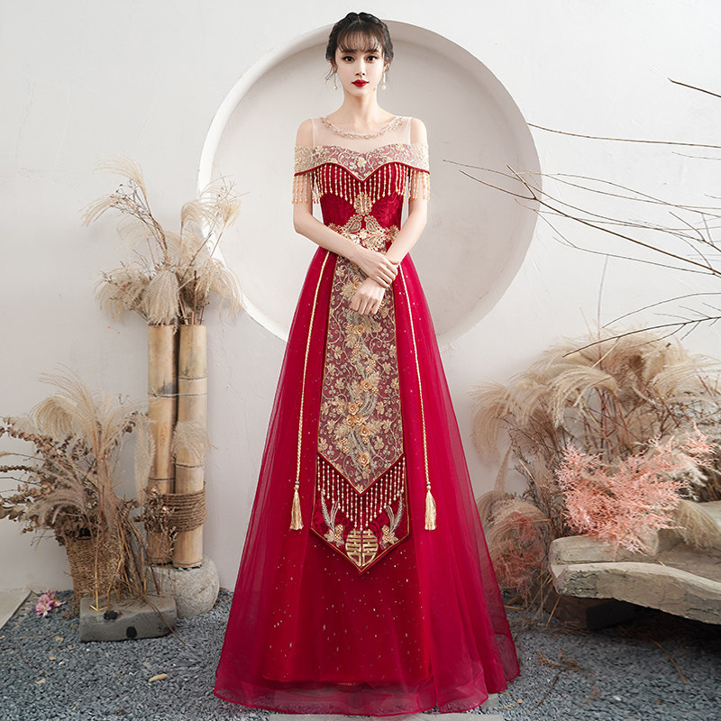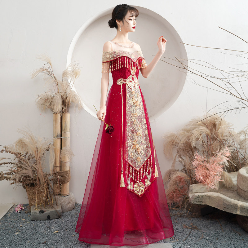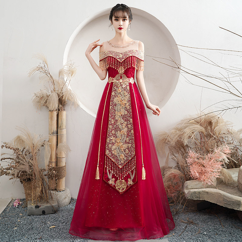 Toast dress bride 2021 new marriage red summer thin back-door tassel Chinese dress skirt female show wo clothing
