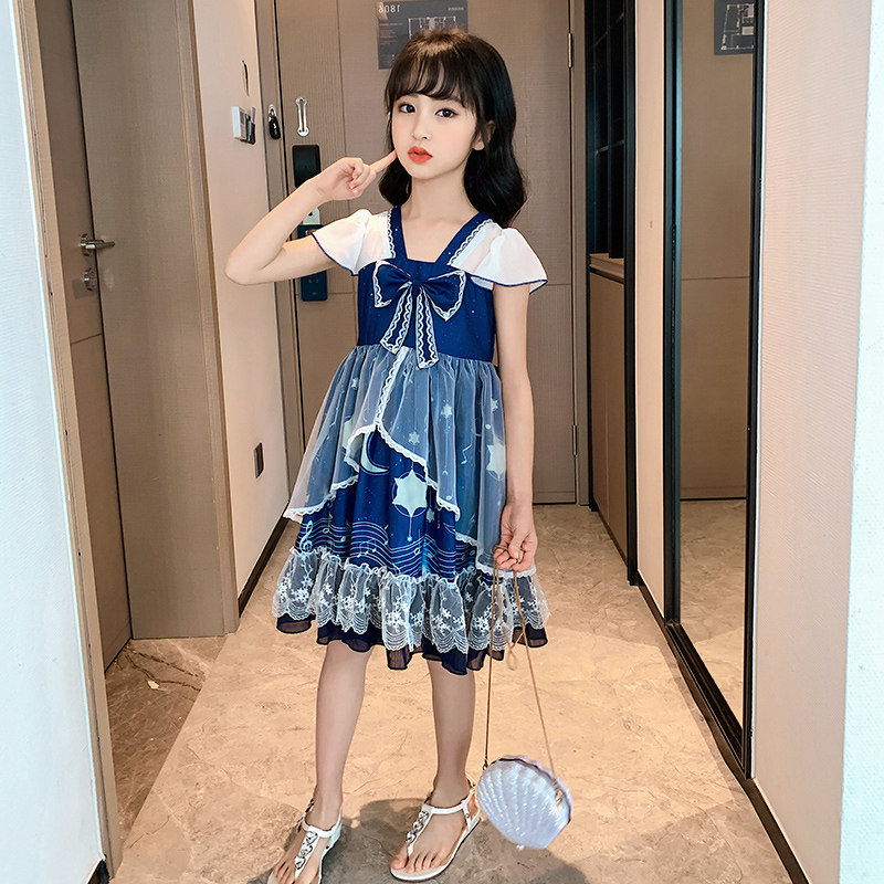 Korean girls summer Lolita dress 2021 new children's foreign style puffy yarn dress summer princess skirt