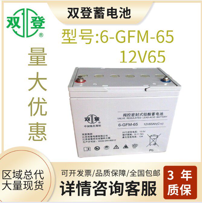 Shuangdeng battery 12V65AH lead-acid maintenance-free 6-GFM-65 ship base station UPS DC screen EPS communication