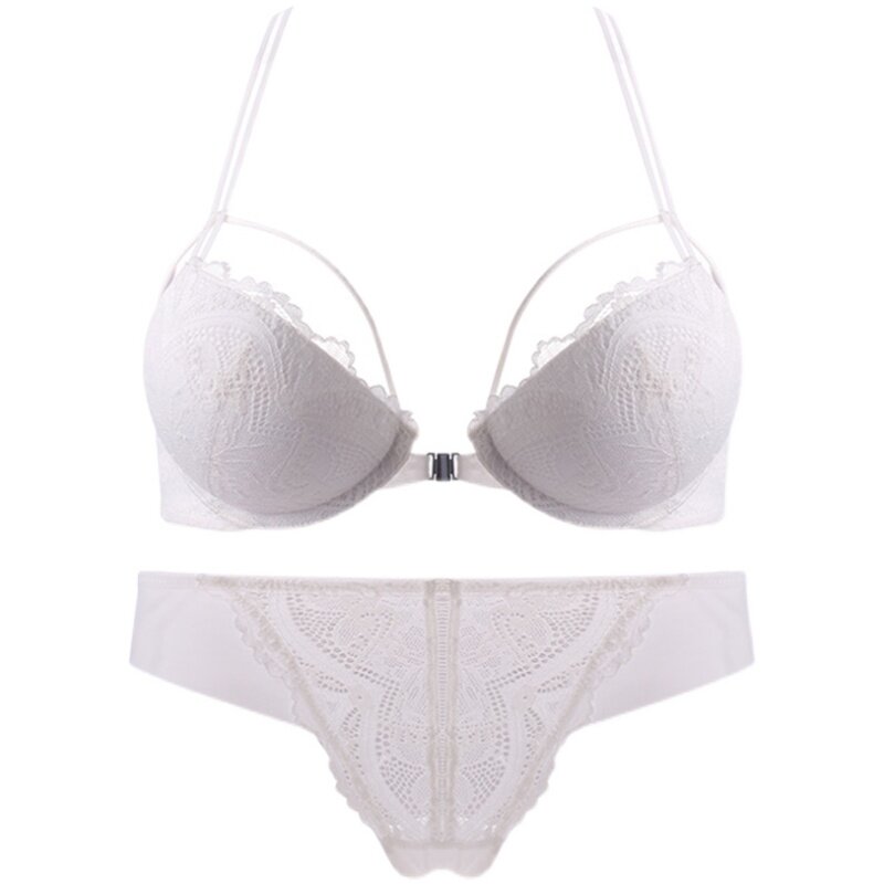 Japan mumuain front button lingerie women's small breasts gathered lace adjustment type sexy beauty back bra set