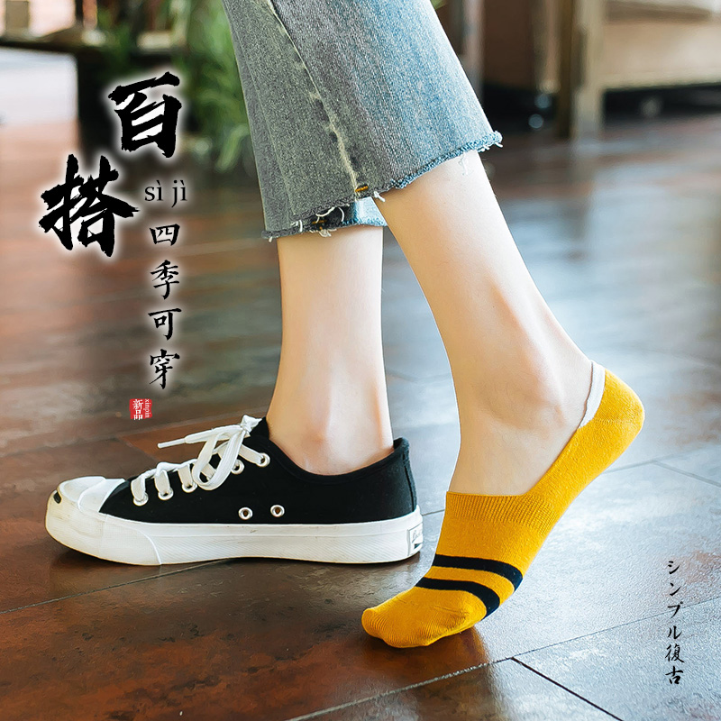Tide brand socks women's summer thin invisible socks ladies invisible socks shallow mouth cotton deodorant silicone non-slip spring and autumn socks