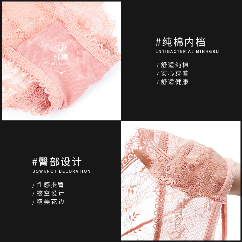 Women's cotton crotch sexy panties mid-low waist cotton seamless lace belly Japanese girl hip-lifting shorts