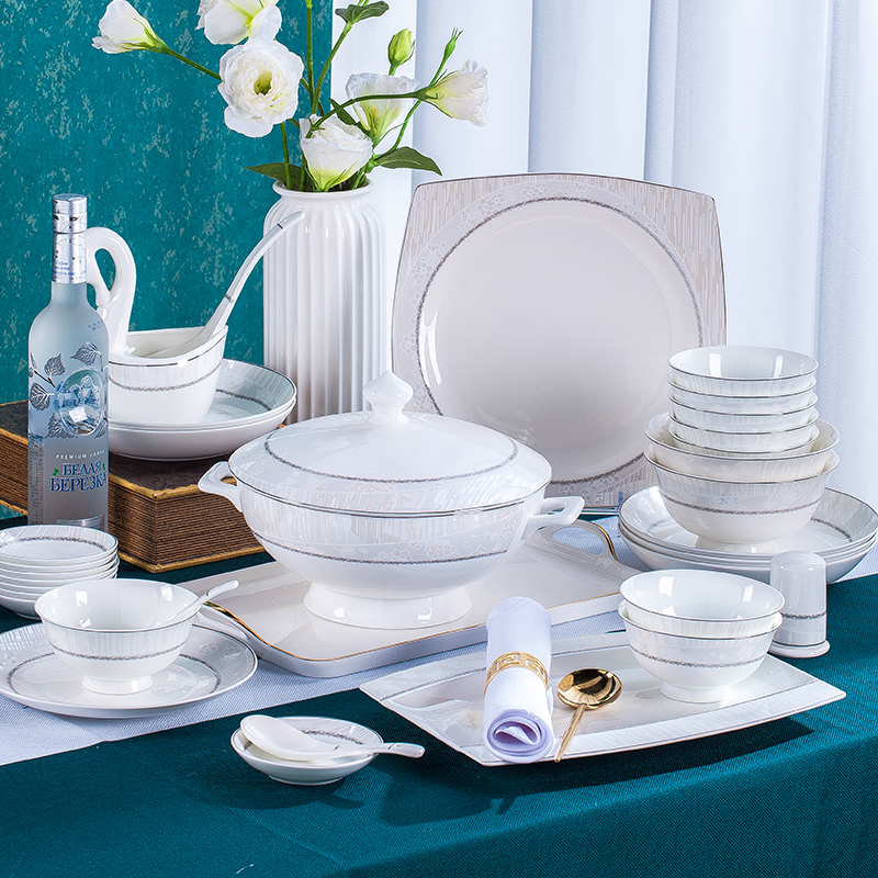 High-end cutlery light extravagant Jingdezhen Bone Porcelain Bowl tray upscale Combined Nordic Wind minimalist Dishes Suit Home Jo