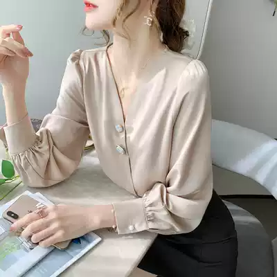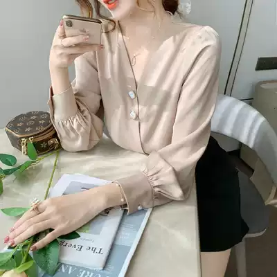 Temperament V-neck chiffon shirt Women's Spring New French retro shirt long sleeve fashion wild shirt ins tide