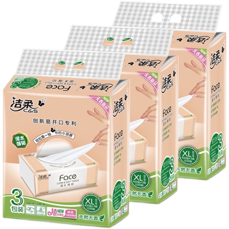 Clean and soft pumping paper fragrance-free solid tissue paper household paper wettable water face towel toilet paper 3-layer XL size plus 150 pumping benefits
