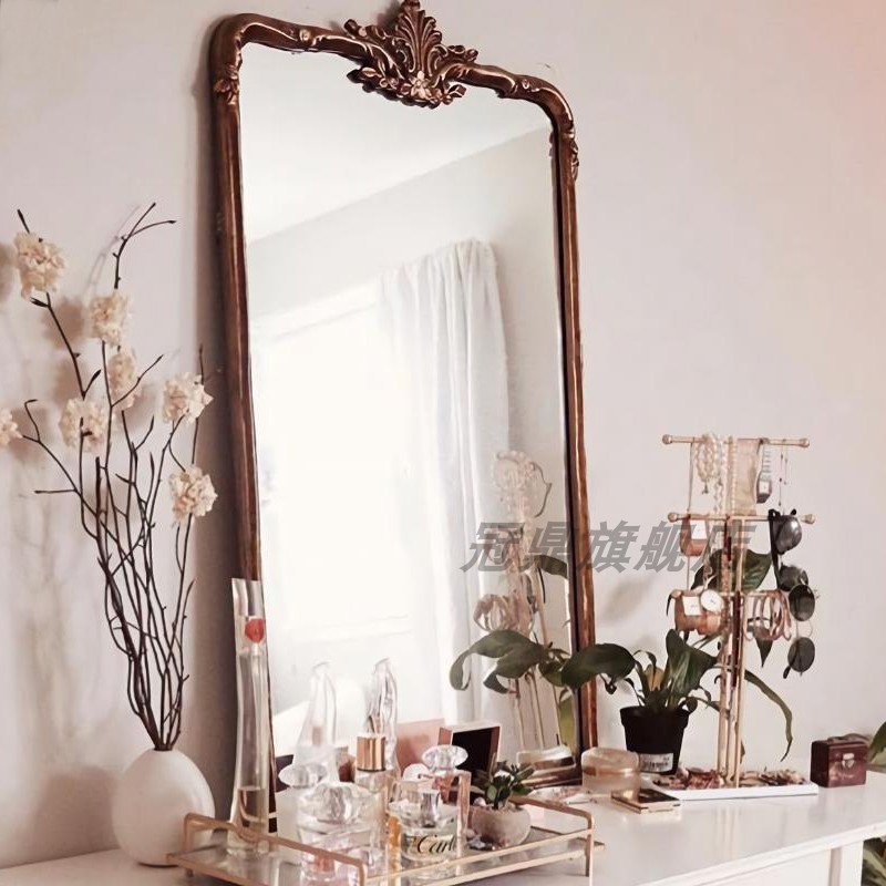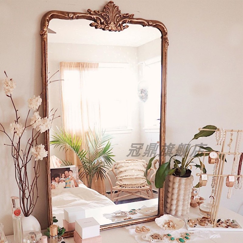 French mirror Bedroom vanity table Wall-mounted makeup mirror Wall-mounted makeup room retro carved makeup mirror customization