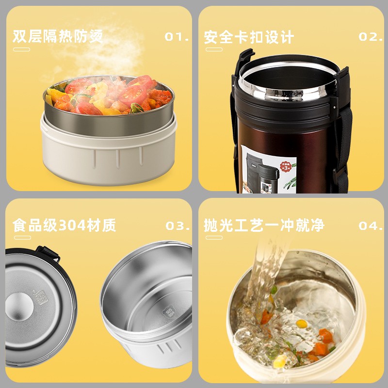 Japanese insulation lunch box multi - layer students are super long and a box 1 people working people portable stainless steel vacuum insulation drum