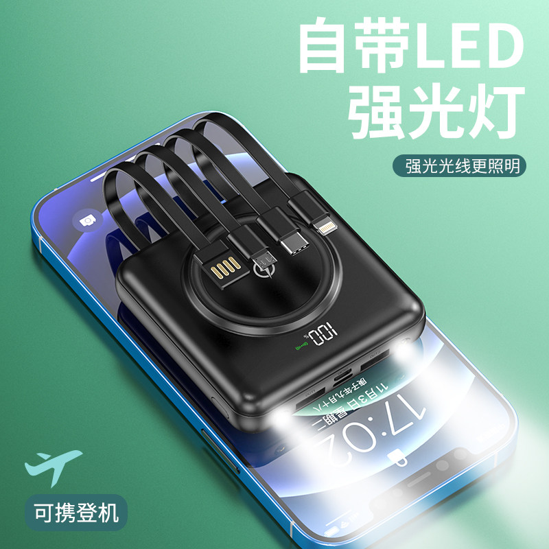 Mobile charging ultra-thin and small portable suitable for Xiaomi Apple Huawei Wireless Bring Your Own Line Quick charge Oversize Mini 20000 mAh official flagship store data line Three-in-one