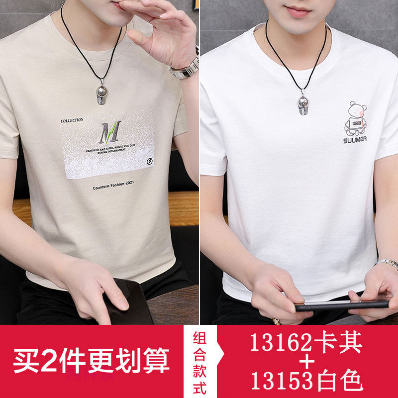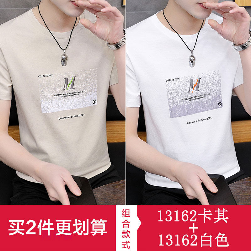 Ice silk short-sleeved T-shirt men's round neck 2021 summer new trend half-sleeved shirt bottoming clothes men's clothing