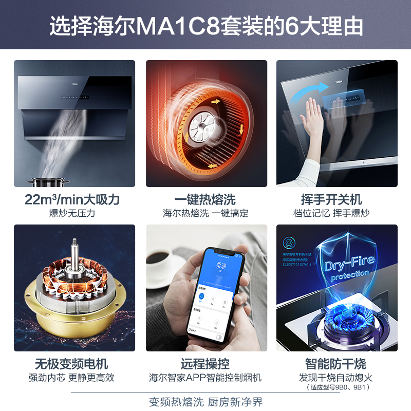 Haier MA1C8 range hood gas stove package natural gas cooker set smart kitchen official flagship