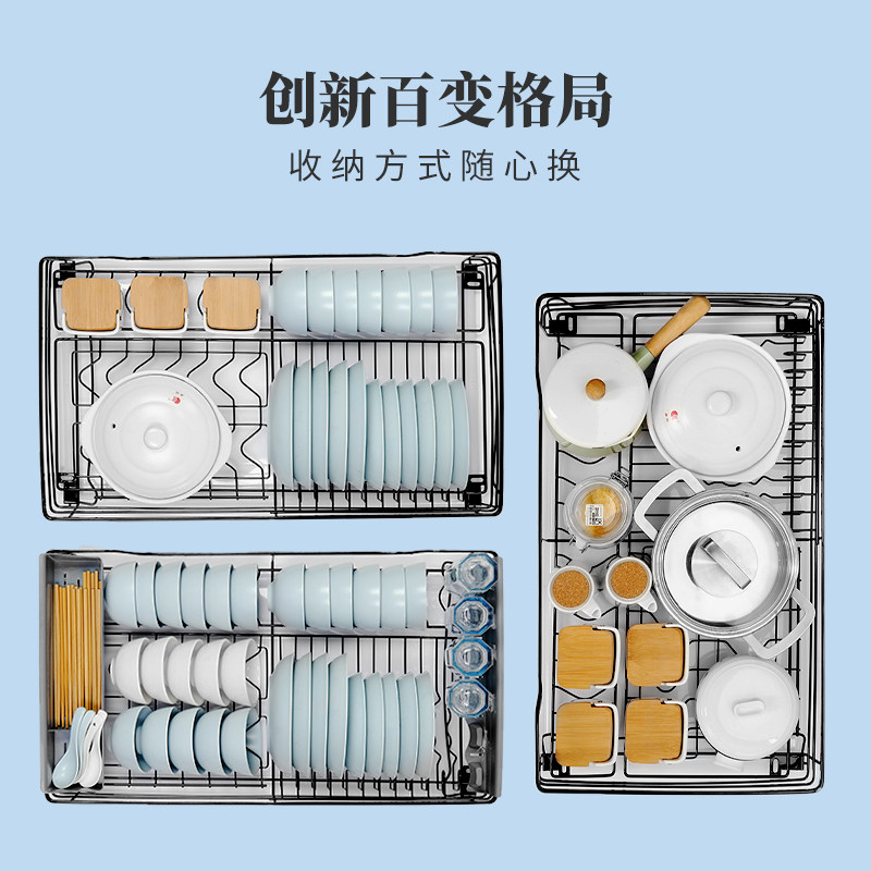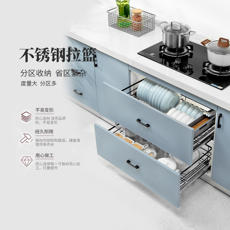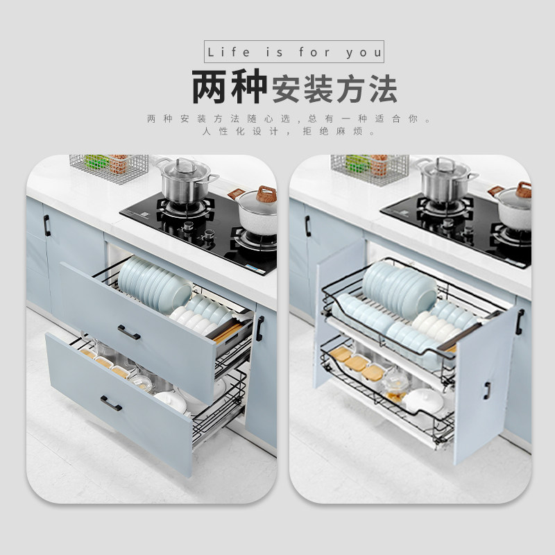 Nazhi La Basket Kitchen Cabinet 304 Stainless Steel Double Drawer Damping Cabinet Built-in Seasoning Bowl Rack Bowl Basket
