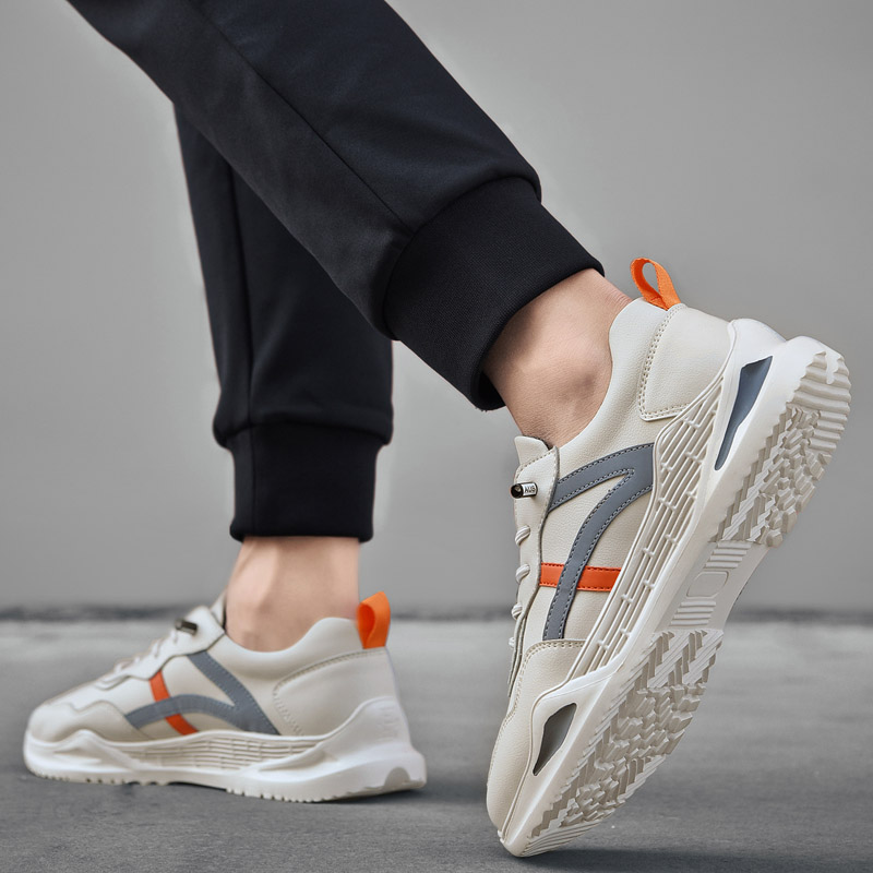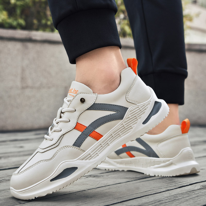Men's shoes autumn new sports shoes leather casual sneakers trend Korean version all-match leather waterproof youth running shoes