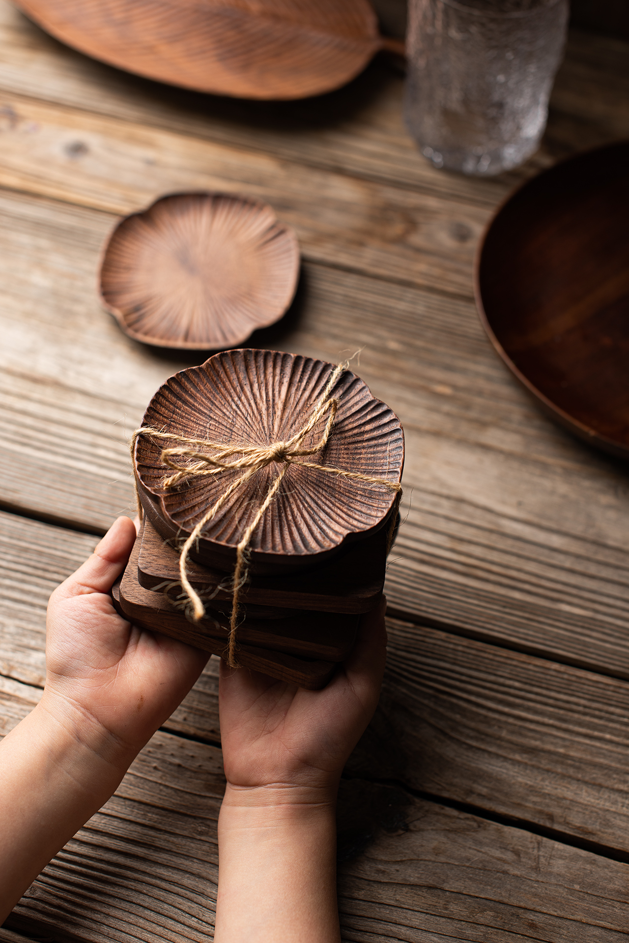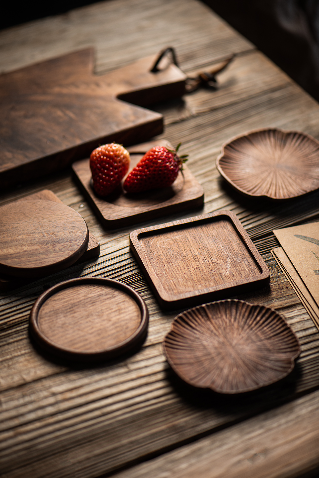 Black walnut coaster Vintage Chinese pastry food photography props Tea tray Insulation mat Solid wood