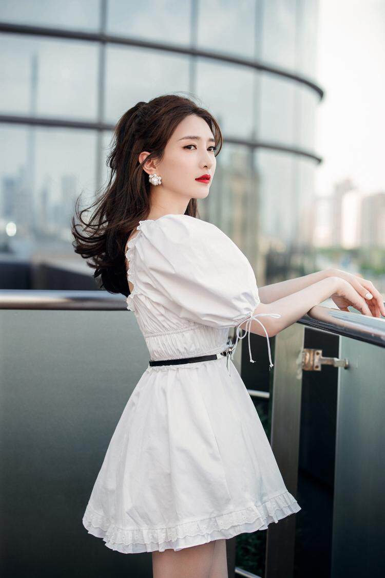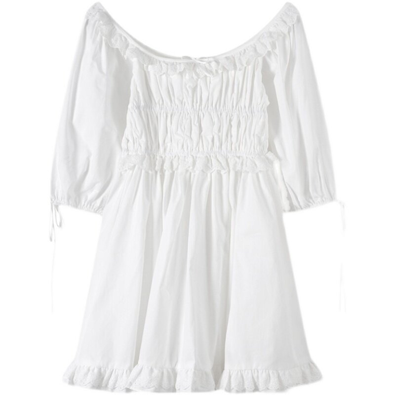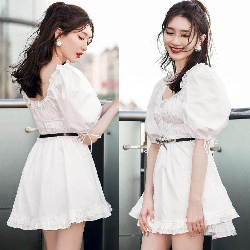 France maje 3-ten Just the river Shadows The Same Collection Waist Display Slim White Square Collar Bubble Sleeves Ocean Dress