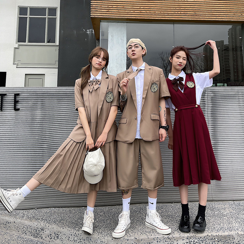 White shirt (men and women) Kacchan suit coat (men and women of the same) red navy collar dress red V-collar dress card their color shorts card their color trousers (shirt red V