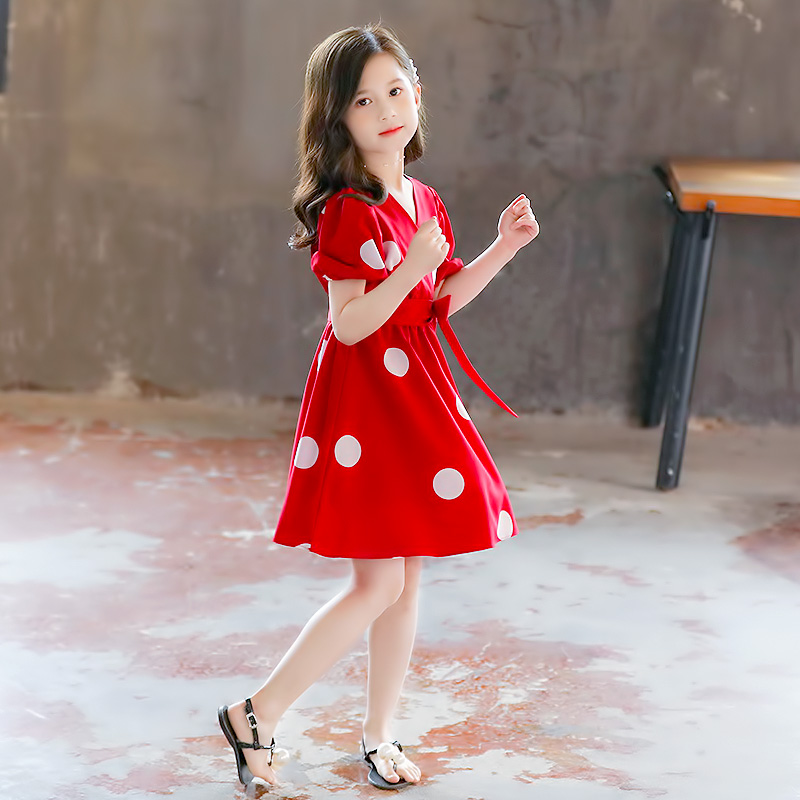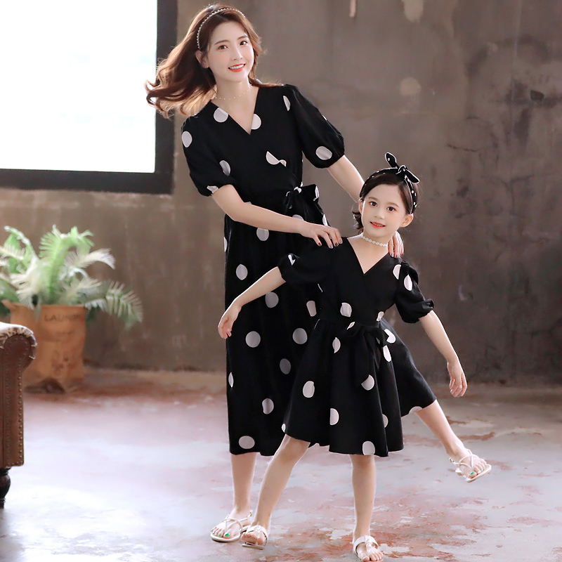 Child-child dress Summer Mother and Daughter Summer Dot Bubble Cuff Dress Yangtze Child Skirt