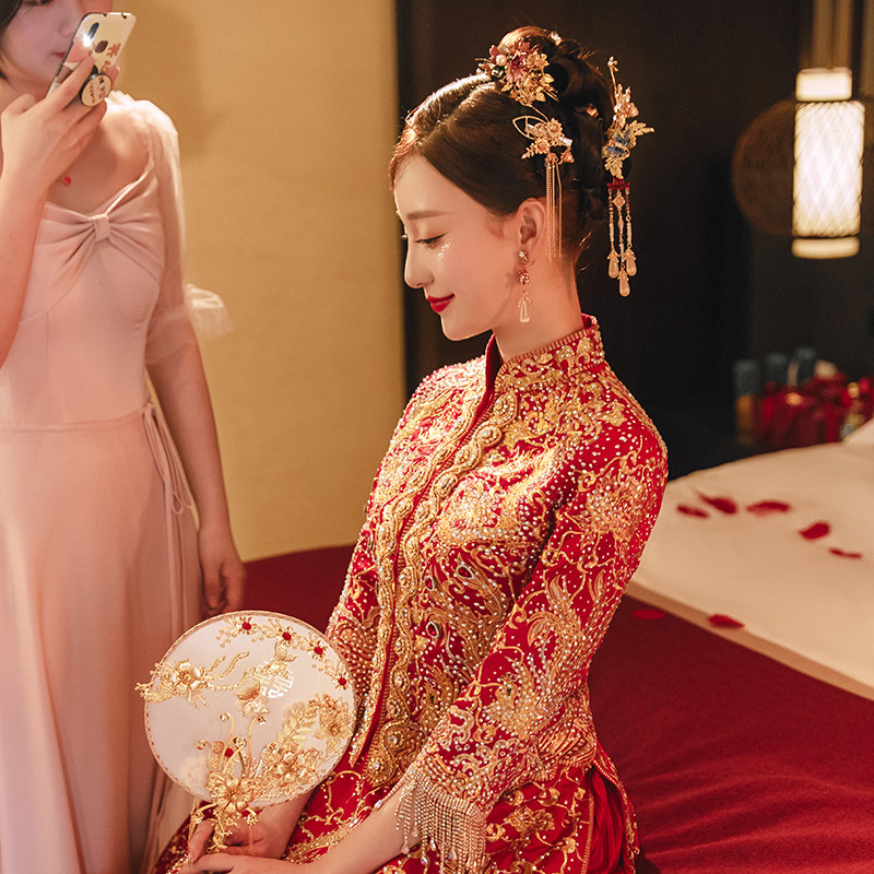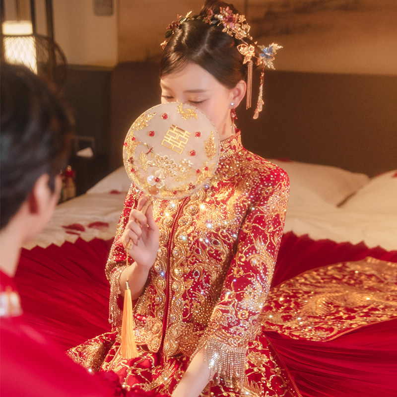 Xiuhe dress female bride 2021 new Chinese wedding dress wedding dress toast dress dragon and phoenix hanging Xiuhe little man summer