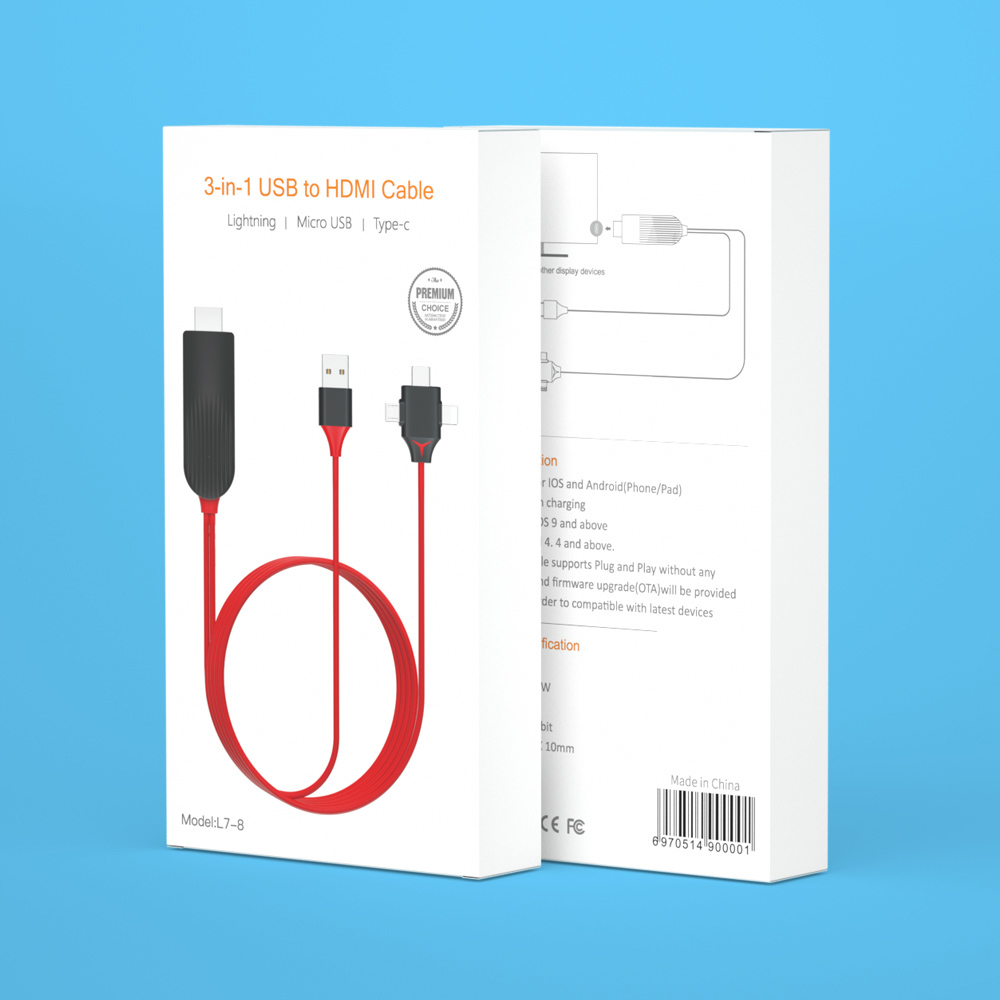 Horizontal and vertical screen version same screen line Android projection line iPhone vertical screen projection device monitor TV projector