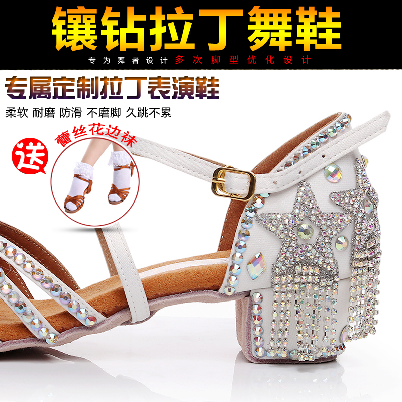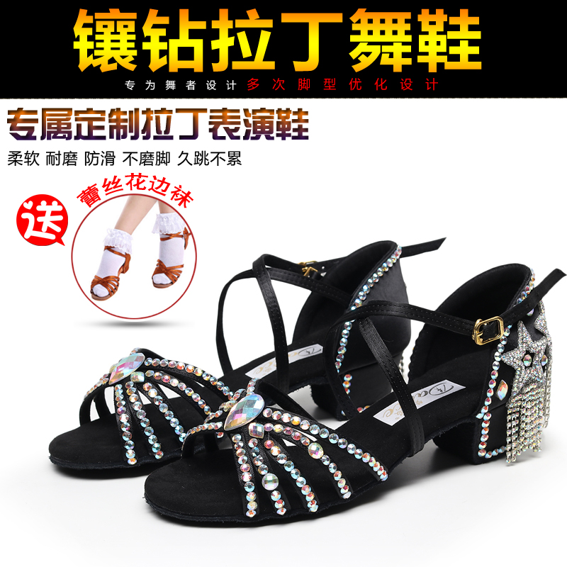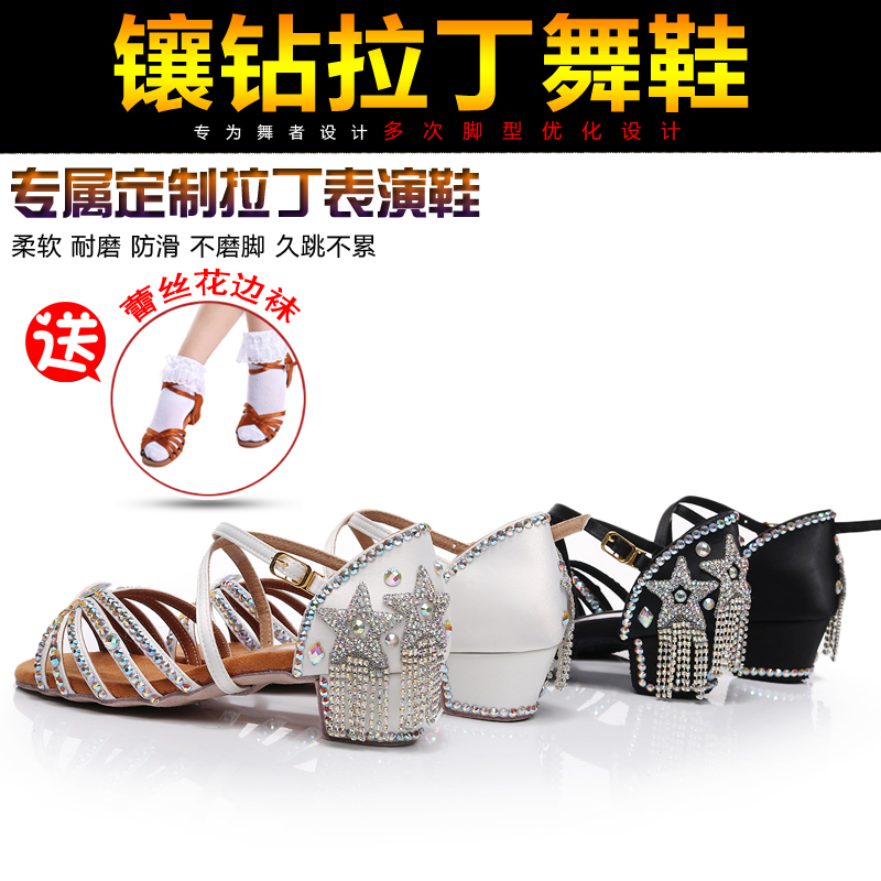 New Latin dance shoes female children stream Su inlaid drill inlaid with girls dancing performance shoes dance shoes toddlers soft-bottom summer