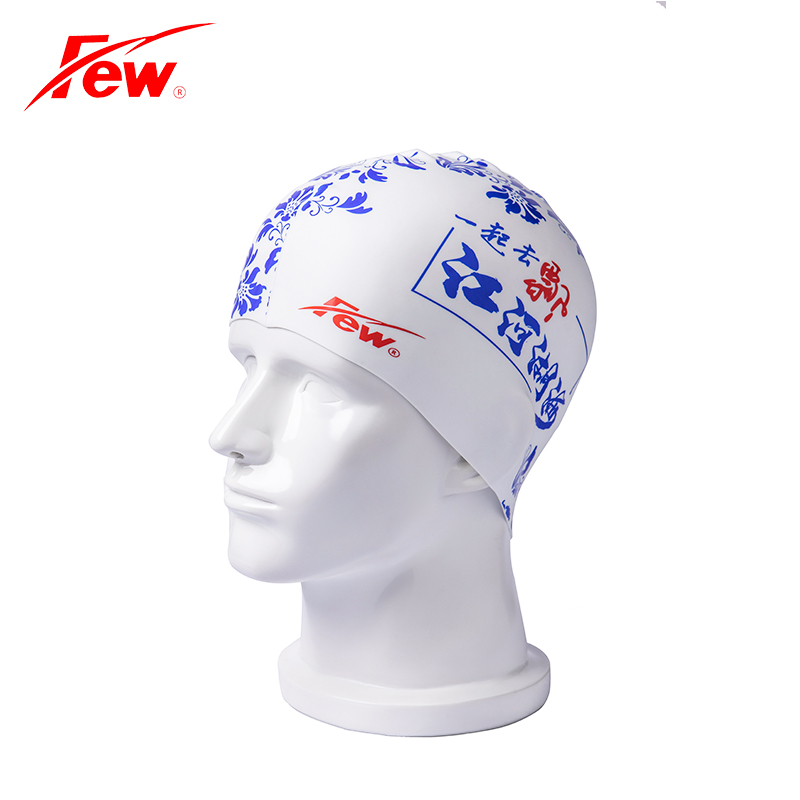 Flutter (FEW) with floating river Lake Haiqing flower porcelain pattern printed silicone swimming cap waterproof training FH18