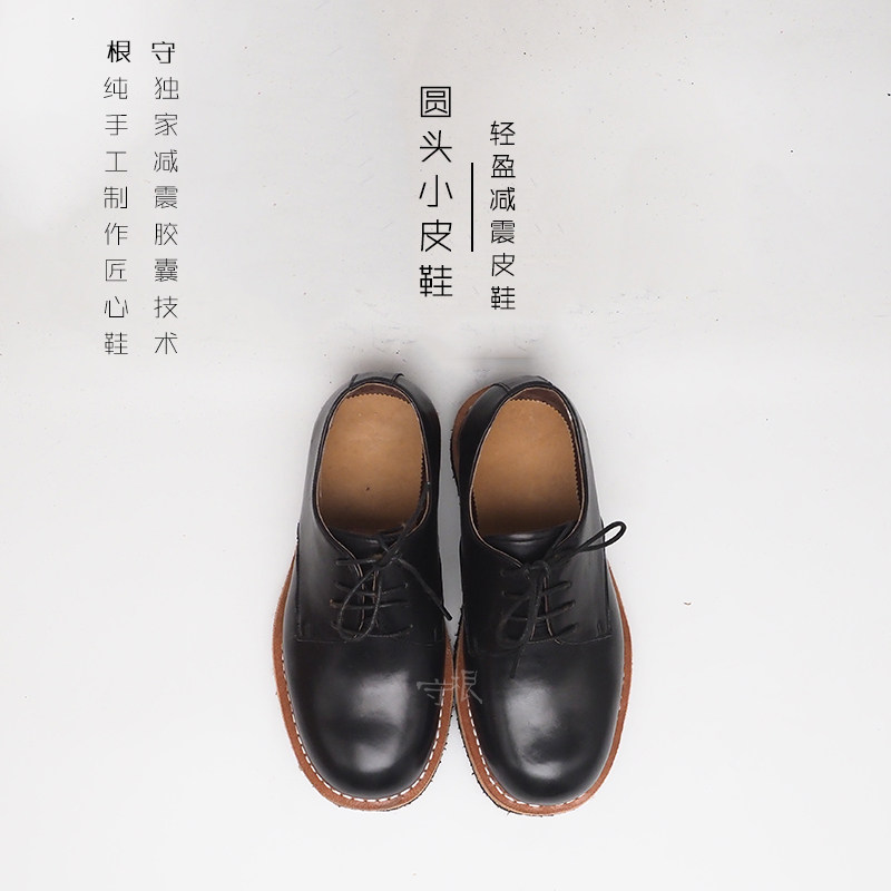 Light Weight Shock Absorbing Leather Shoes Business Positive Dress Round Head Men's Black Fetal Bull Leather Grinding Lace Solid Specific Handmade Shoes Goalkeeper