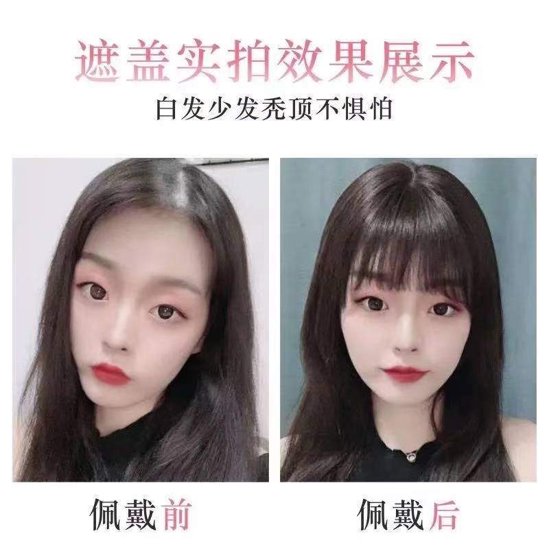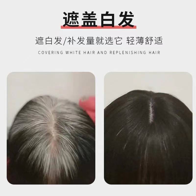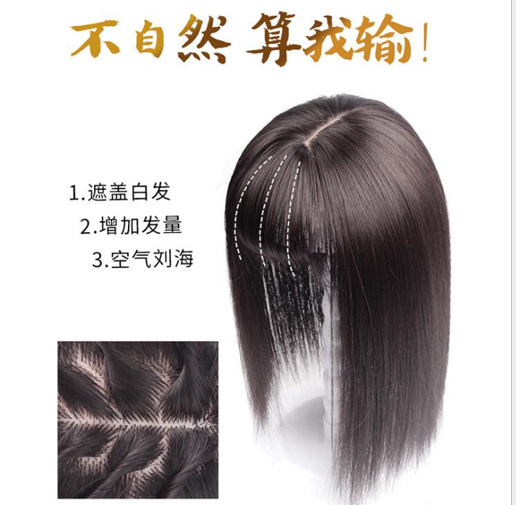 Top of the head reissued women cover white hair real hair bangs a piece of straight hair, ultra-thin invisible invisible natural realistic replacement