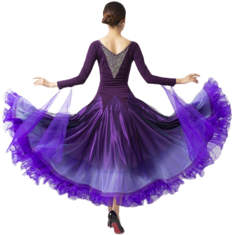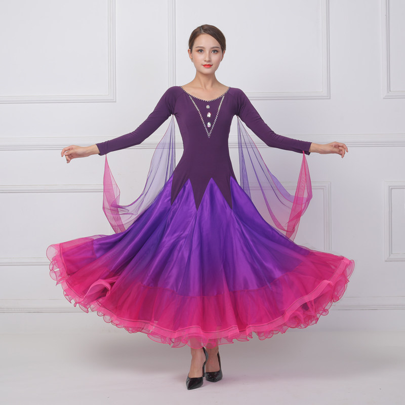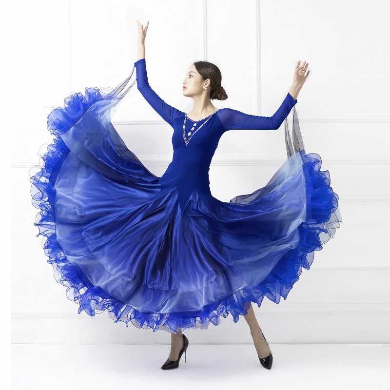 Spring Autumn New Morden Dress Grand Swing Long Dress Waltz Performance Suit National Standard Dance Dress Competition Ballroom Studi Studi Studi-Taobao