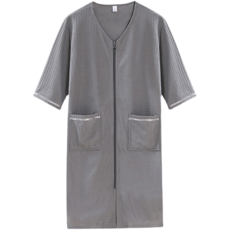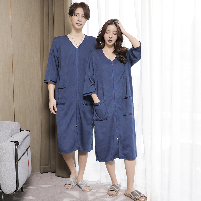 Spring and autumn men's pajamas one-piece large size zipper nightgown thin men's nightdress one-piece softer than pure cotton