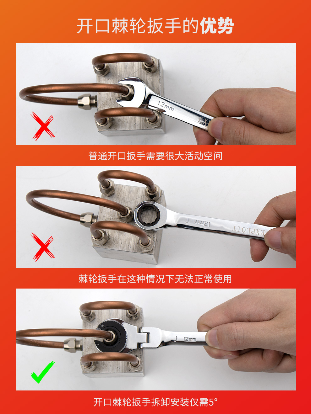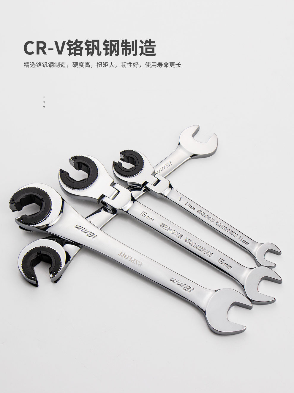Tubing Wrench Ratchet Wrench Brake Tubing Removal Tool Floor Heating Open Wrench Alloy Steel Double Head Wrench
