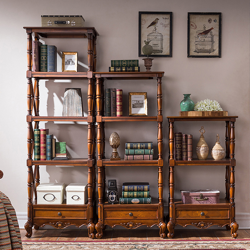 American-style solid wood bookshelf floor-to-ceiling multi-layer display rack 345-layer combination storage shelf European-style classical carved storage