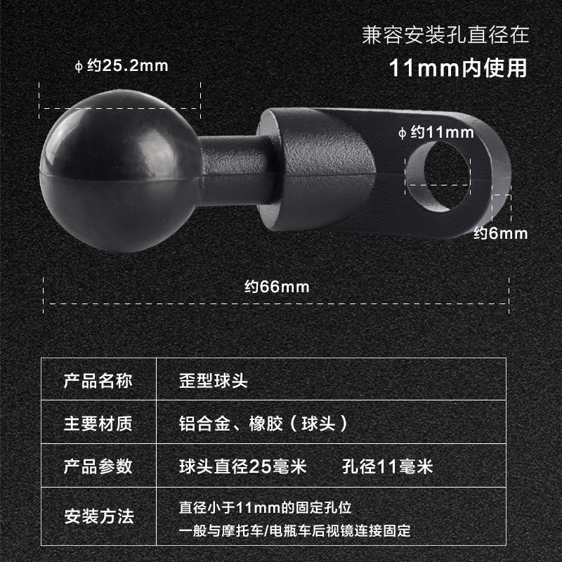 Motorcycle electric car rear mirror ball head is a crooked ball head 25mm ball head mobile phone bracket general accessories