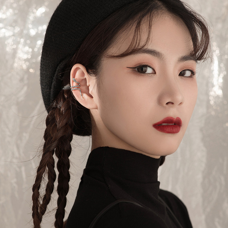 (Alley South) 925 Pure Silver Serpentine Ear Clip Woman 2022 New Tide No-Ear-Hole Summer Earbone Clips Ear