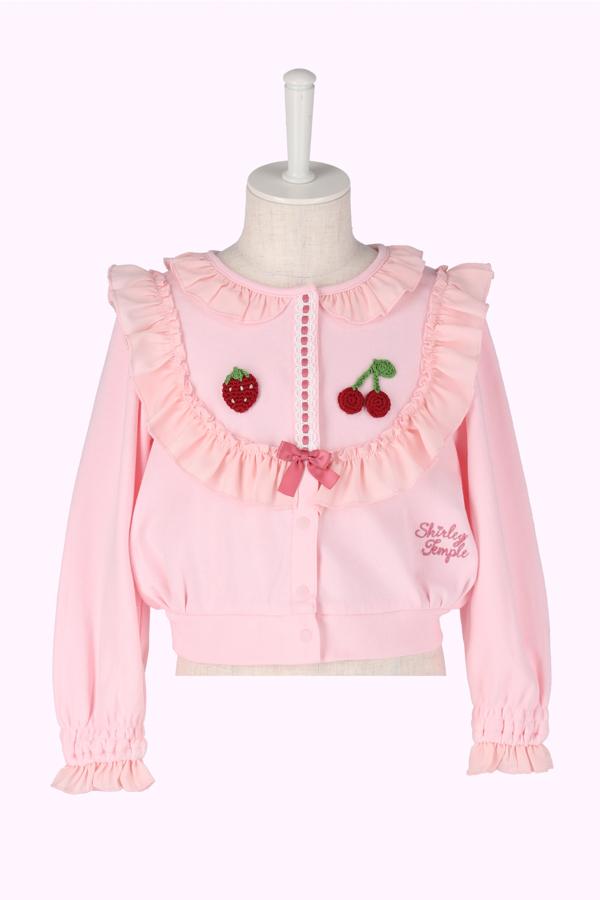 2102-006 Strawberry Embroidered Long Sleeve Cardigan Top