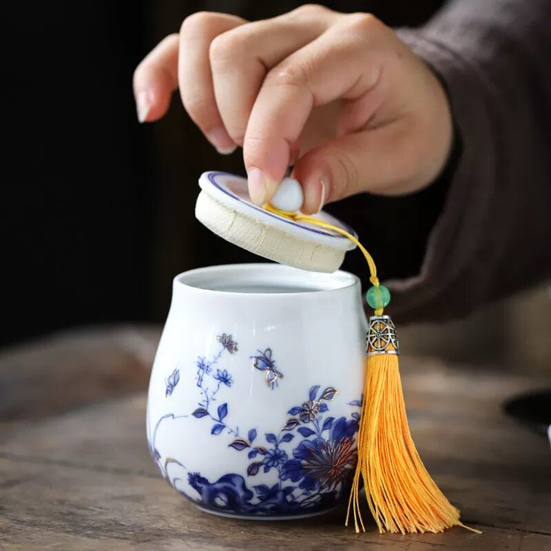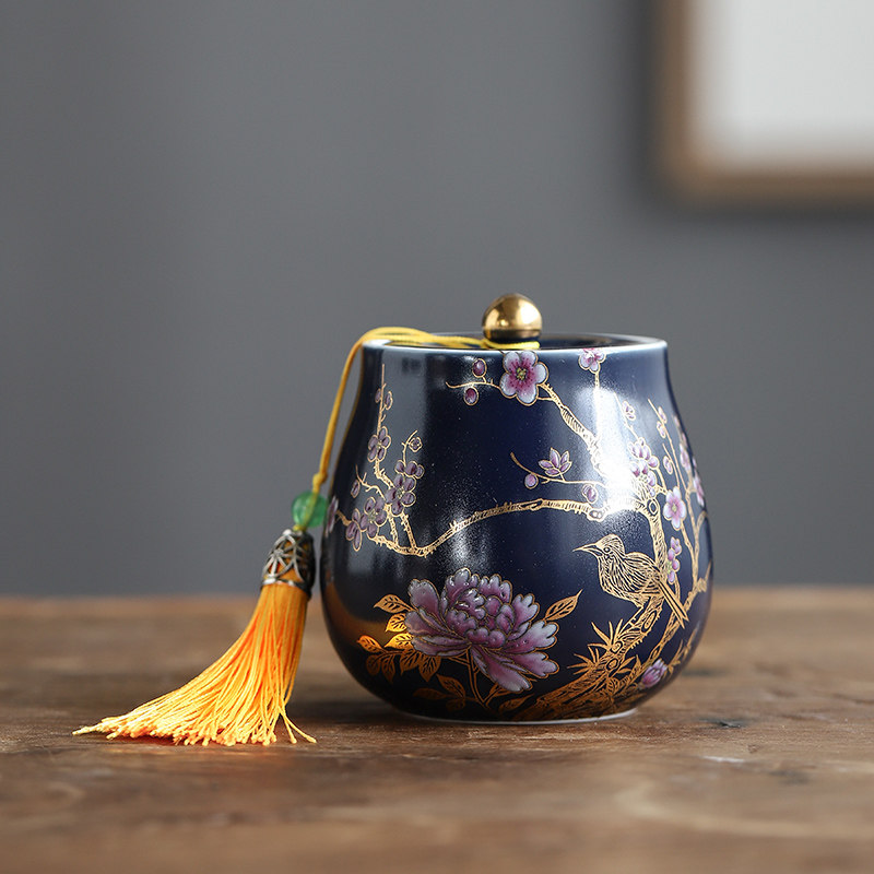 Enamel color Chinese ceramic tea leaf jar small number sealing jar for home convenient tea cabin moisture-proof storage tank single