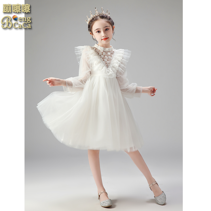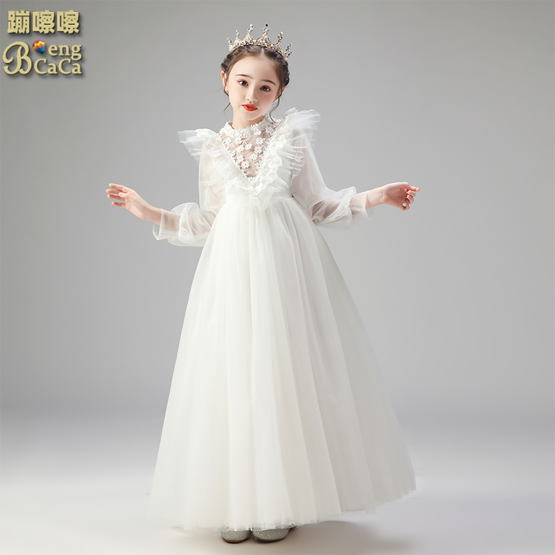 Children Princess Dress Little Girl White Flower Girl Wedding Dresses Host Girl High-end Piano Plays Out of the Fancy Dress
