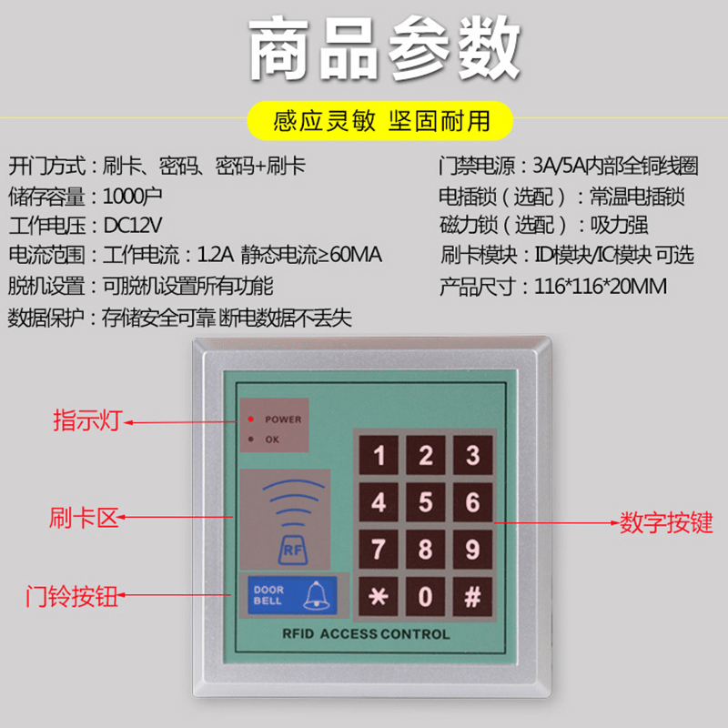 Electronic access control system ID Access control All office IC swipe read head community password access lock