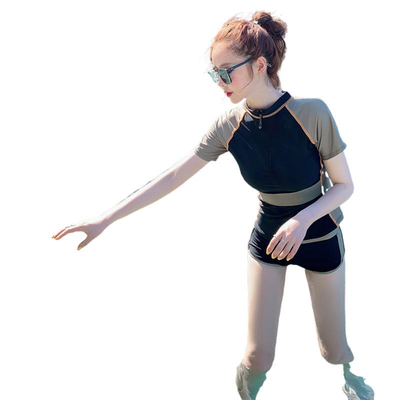 Swimsuit women's summer 2021 new Korean ins split two-piece cover belly conservative thin long sleeve sunscreen swimming suit