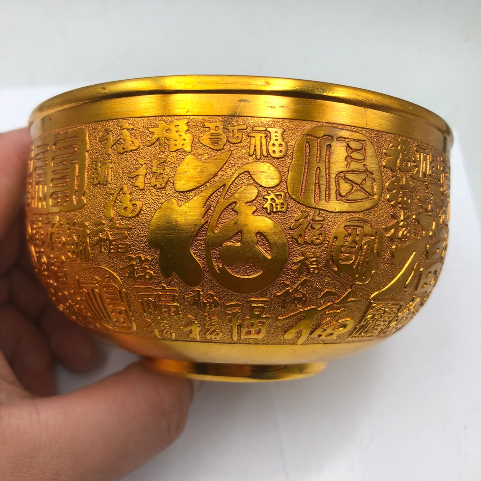 Ancient Play Bronze Ware Perfuku Bowl Pendulum with Golden Metal Home Craft Ornament