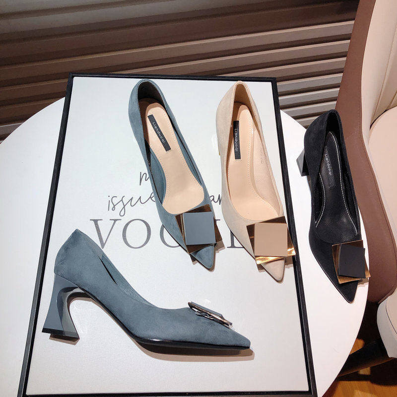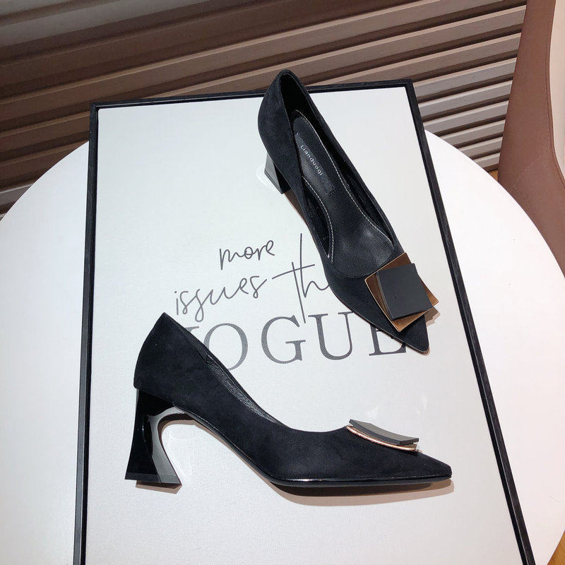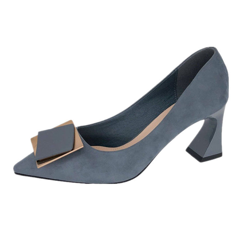 Gulvdinel Korean version of small fresh pure love high heels women's thick heel frosted temperament blue square buckle pointed toe bag shoes