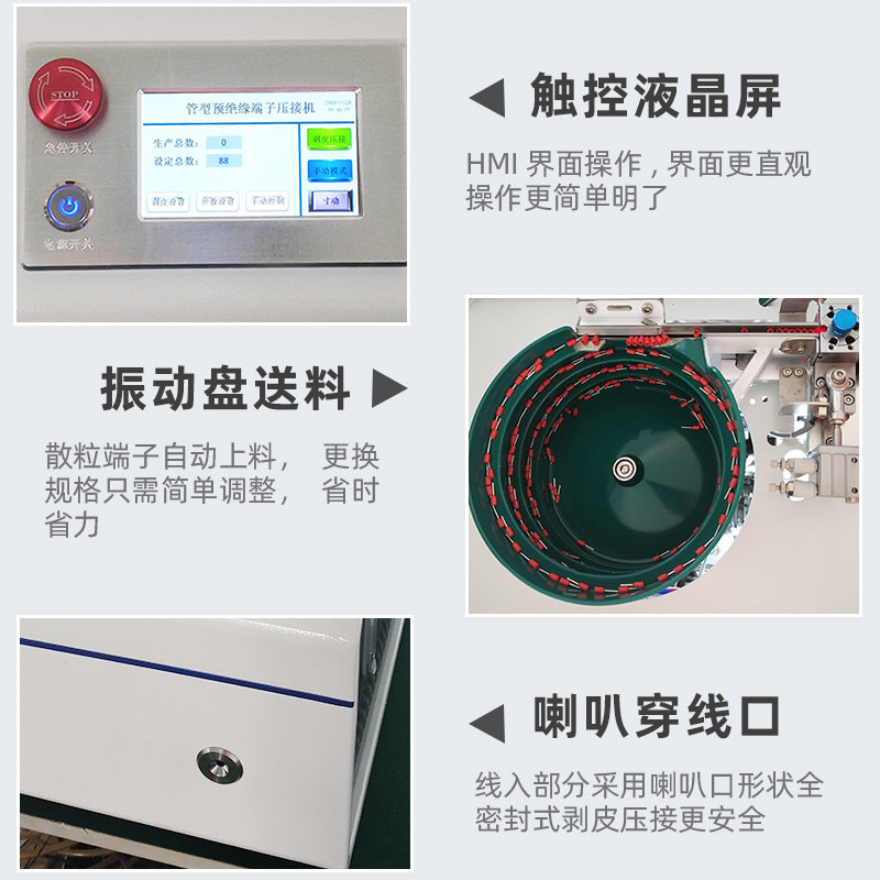 Fully automatic round tubular needle tube type terminal machine peeling and end machine insulation single grain terminal crimping machine with stripping and punching
