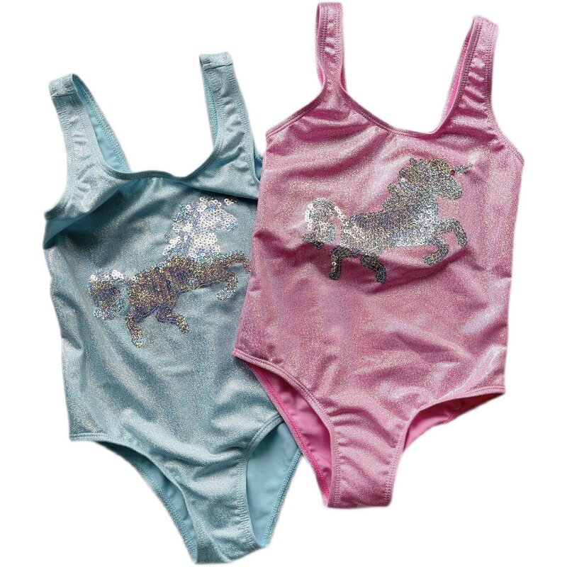 Foreign Trade Outlet Baby Bathing Suit Children Small Horse Rainbow Pony with swimsuit seaside holiday swimsuit with fine sequin