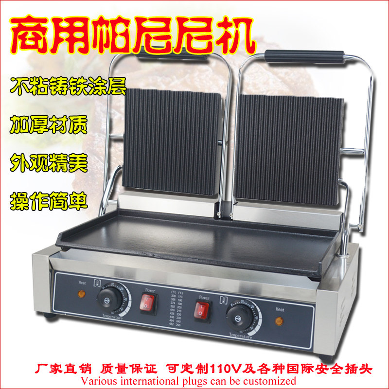 Commercial electric panini pressure plate steak oven pancake chicken chop western food double-sided heating equipment can be customized 110V