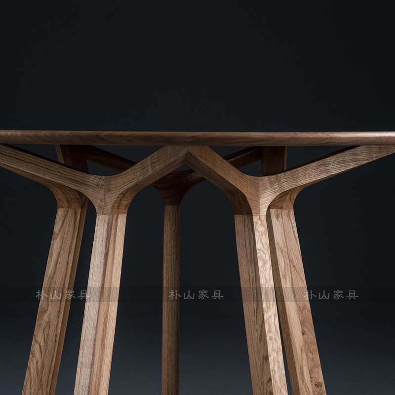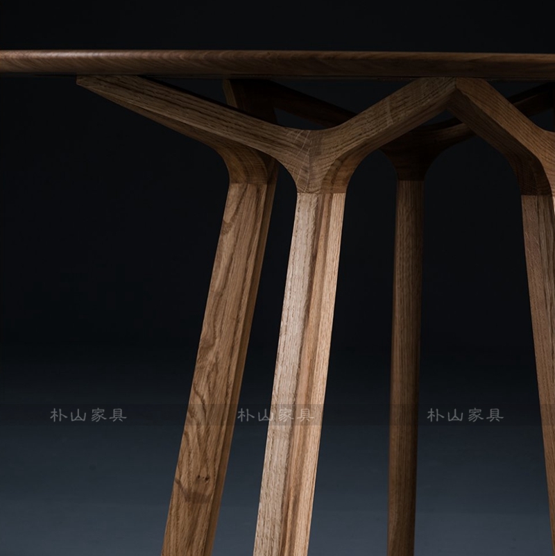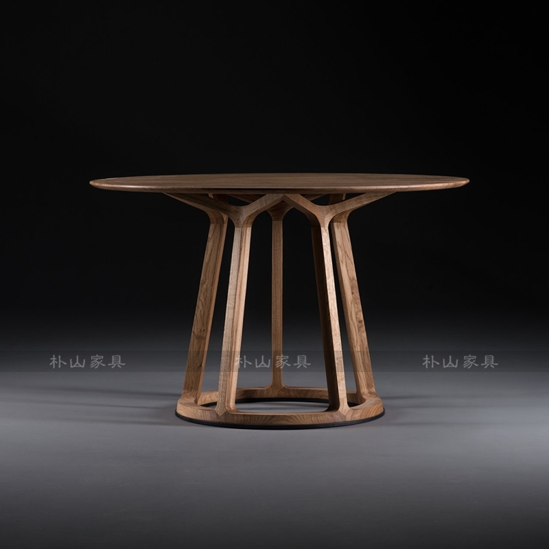 North American black walnut round dining table and chair combination Nordic modern minimalist home light luxury minimalist solid wood round table and chairs