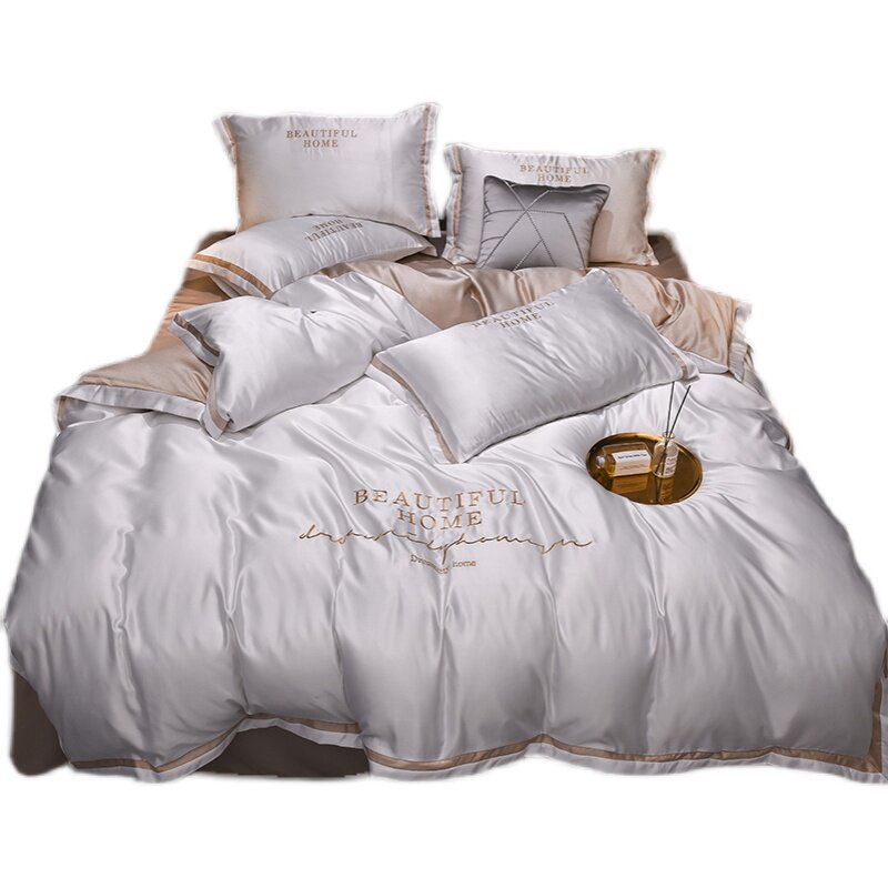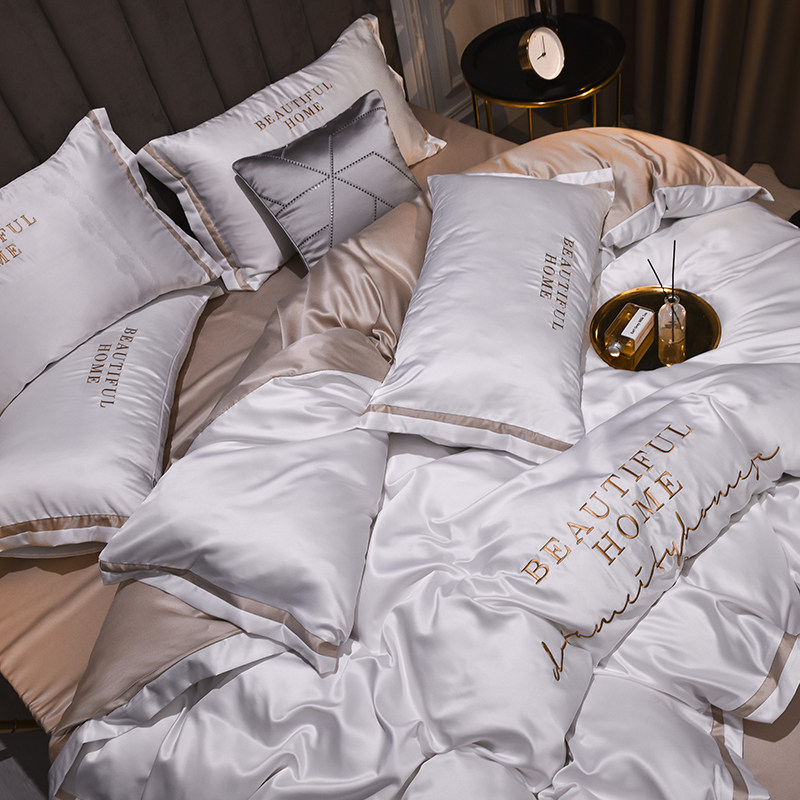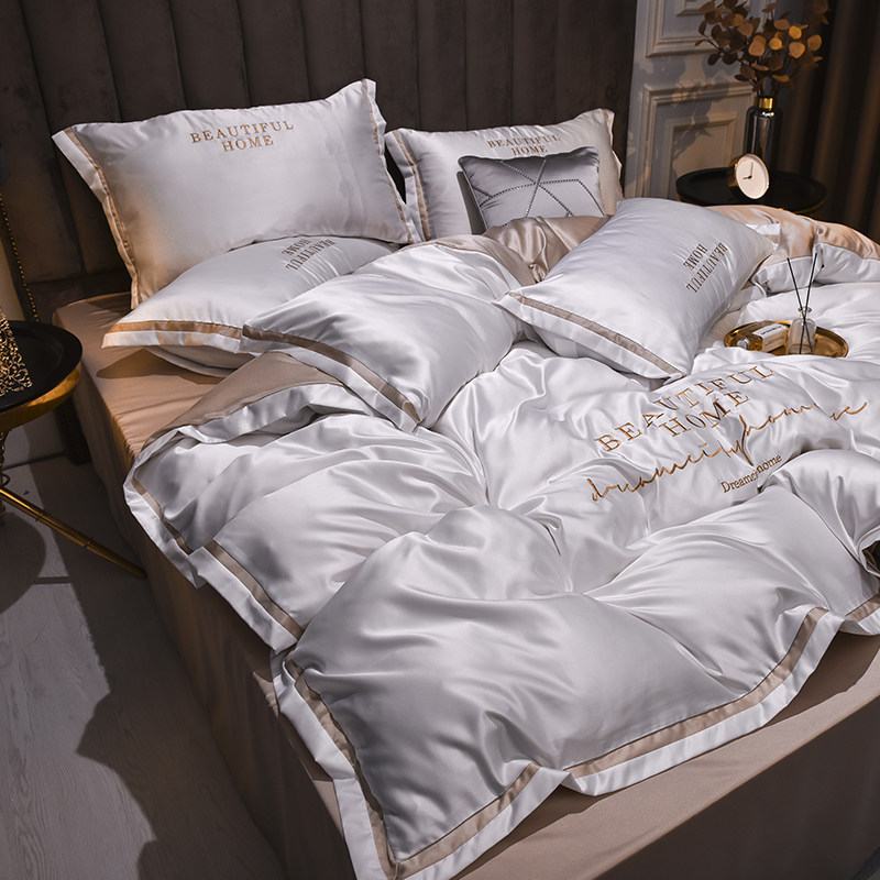Nordic Wind Ice Silk 60 Four Pieces of Intimate Bed Bedding Nude Sleeping Quilt Cover Washed True Silk Cotton Net Red Sheet 4