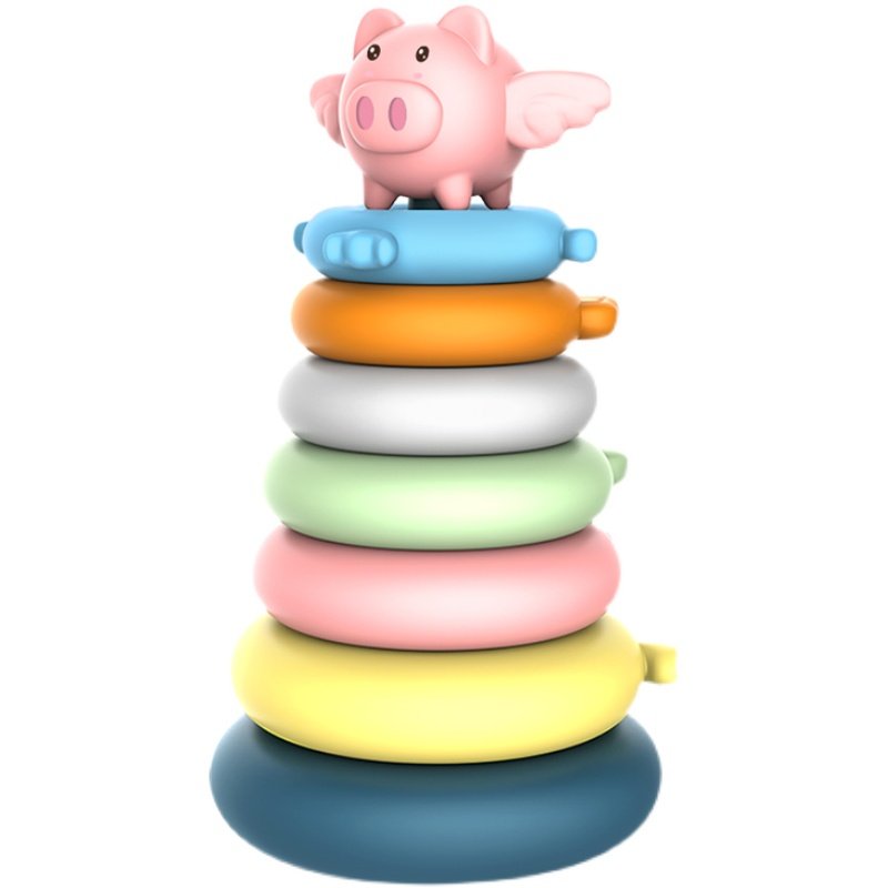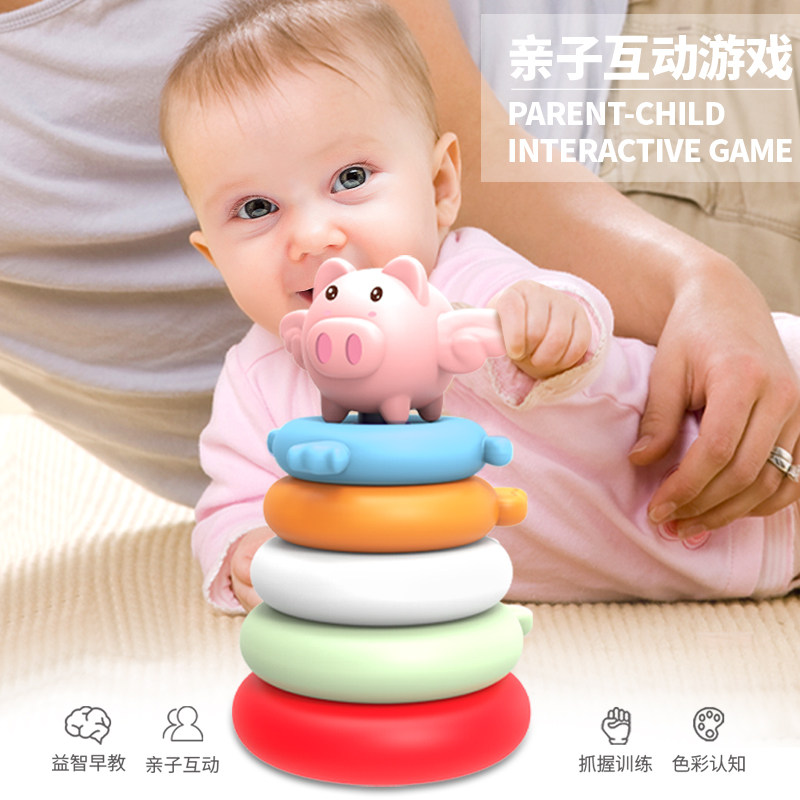 Laminated Leaf Children's Puzzle Baby Toys Rainbow Tower Animal rings lap Early Cognitive Sleeve 1 year 0